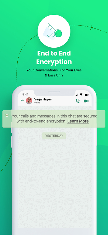 This app understands that your safety is important. Keeping that in mind, we have embedded an end-to-end encryption function, which means that your calls, messages and all your conversations are safe and secure.